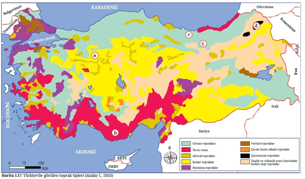 Türkiye toprklarının yapısı için bkz. Kaynak: https://www.bilgipedia.com.tr/turkiyede-topraklarin-dagilisi-ve-genel-ozellikleri/